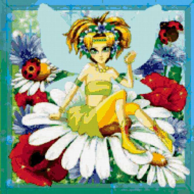 Ориентировочно так, схема вышивки «Unnamed-899616», созданная автором malkinaiv, будет выглядеть при отшиве на канве. Размер данной вышивки равен 190x190 крестов, при этом используется 78 цветов. Ключевые слова, по которым можно найти эту схему: картинки, подушка, подушки, в детскую, феи, эльфы, дети, цветы, насекомые, ромашки, маки. Также, вы можете взглянуть на оригинальную картинку, соответствующую данной схеме вышивки.