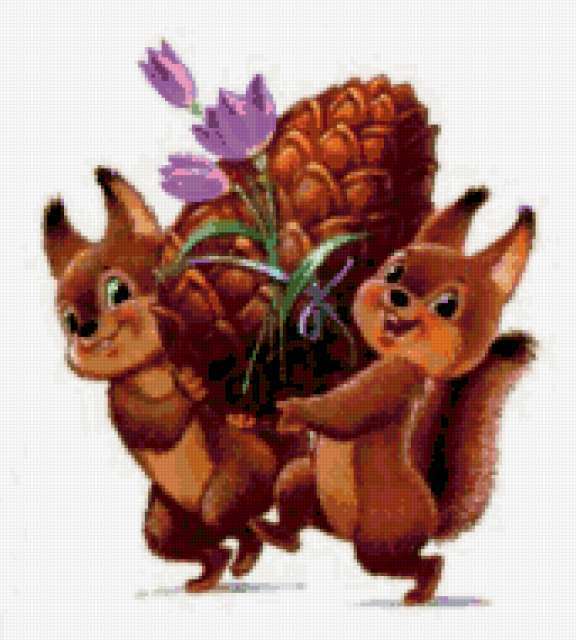 Ориентировочно так, схема вышивки «Unnamed-904926», созданная автором BiataV, будет выглядеть при отшиве на канве. Размер данной вышивки равен 171x190 крестов, при этом используется 69 цветов. Ключевые слова, по которым можно найти эту схему: природа, фауна, белка, животные, мультфильм, открытка. Также, вы можете взглянуть на оригинальную картинку, соответствующую данной схеме вышивки.