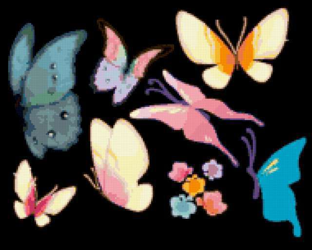 Ориентировочно так, схема вышивки «Unnamed-906755», созданная автором malkinaiv, будет выглядеть при отшиве на канве. Размер данной вышивки равен 190x152 крестов, при этом используется 48 цветов. Ключевые слова, по которым можно найти эту схему: бабочки, насекомые. Также, вы можете взглянуть на оригинальную картинку, соответствующую данной схеме вышивки.