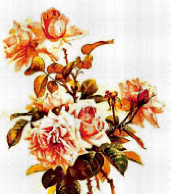 Ориентировочно так, схема вышивки «Unnamed-915695», созданная автором ayse, будет выглядеть при отшиве на канве. Размер данной вышивки равен 168x190 крестов, при этом используется 77 цветов. Ключевые слова, по которым можно найти эту схему: buket, svetq, vaza, roses. Также, вы можете взглянуть на оригинальную картинку, соответствующую данной схеме вышивки.