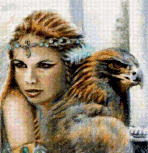 Ориентировочно так, схема вышивки «Unnamed-915850», созданная автором BiataV, будет выглядеть при отшиве на канве. Размер данной вышивки равен 183x190 крестов, при этом используется 83 цветов. Ключевые слова, по которым можно найти эту схему: девушка, девочка, птица, орел, дружба, любовь, фэнтези. Также, вы можете взглянуть на оригинальную картинку, соответствующую данной схеме вышивки.