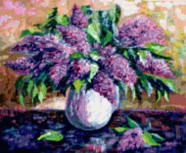 Ориентировочно так, схема вышивки «Unnamed-917850», созданная автором malkinaiv, будет выглядеть при отшиве на канве. Размер данной вышивки равен 190x156 крестов, при этом используется 80 цветов. Ключевые слова, по которым можно найти эту схему: цветы, картина, сирень, букет. Также, вы можете взглянуть на оригинальную картинку, соответствующую данной схеме вышивки.