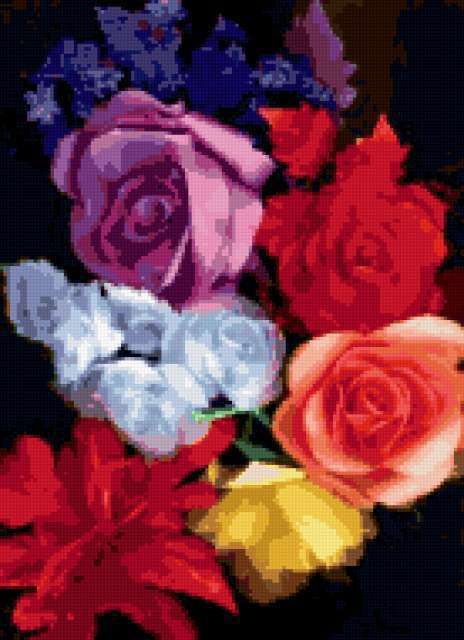 Ориентировочно так, схема вышивки «Unnamed-918801», созданная автором BiataV, будет выглядеть при отшиве на канве. Размер данной вышивки равен 138x190 крестов, при этом используется 65 цветов. Ключевые слова, по которым можно найти эту схему: природа, флора, цветы. Также, вы можете взглянуть на оригинальную картинку, соответствующую данной схеме вышивки.