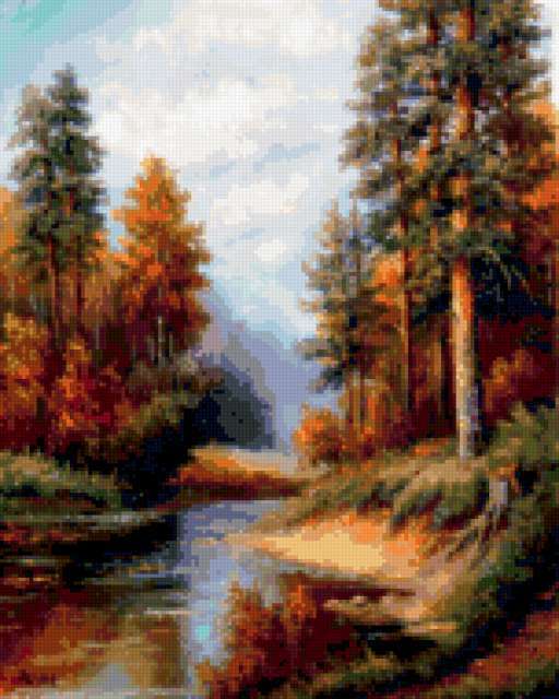 Ориентировочно так, схема вышивки «Unnamed-926168», созданная автором malkinaiv, будет выглядеть при отшиве на канве. Размер данной вышивки равен 152x190 крестов, при этом используется 76 цветов. Ключевые слова, по которым можно найти эту схему: пейзаж, картина, деревья, природа, осень. Также, вы можете взглянуть на оригинальную картинку, соответствующую данной схеме вышивки.