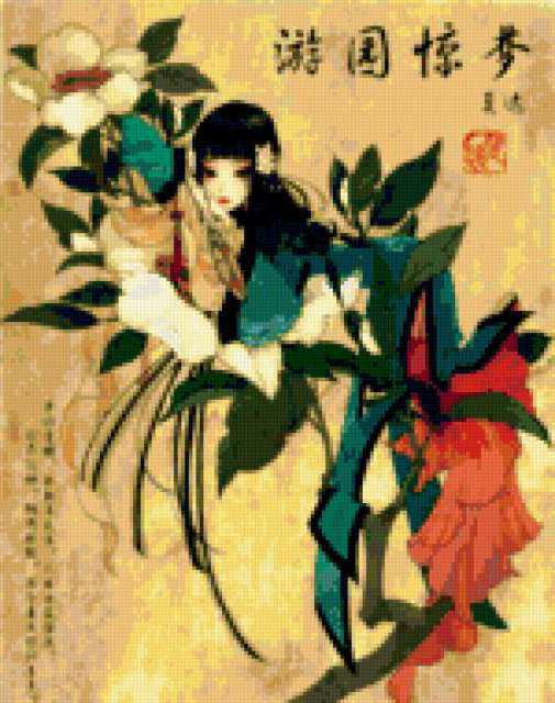 Ориентировочно так, схема вышивки «Unnamed-930521», созданная автором elena20115256, будет выглядеть при отшиве на канве. Размер данной вышивки равен 150x190 крестов, при этом используется 57 цветов. К несчастью, автор не назначил для схемы ключевые слова. Также, вы можете взглянуть на оригинальную картинку, соответствующую данной схеме вышивки.