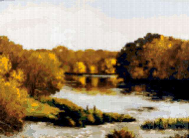 Ориентировочно так, схема вышивки «Unnamed-933519», созданная автором burova, будет выглядеть при отшиве на канве. Размер данной вышивки равен 190x139 крестов, при этом используется 54 цветов. Ключевые слова, по которым можно найти эту схему: артина, пейзаж, природа, озеро, деревья. Также, вы можете взглянуть на оригинальную картинку, соответствующую данной схеме вышивки.