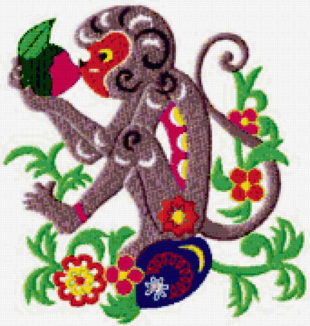Ориентировочно так, схема вышивки «Unnamed-945740», созданная автором PAPADOPULU, будет выглядеть при отшиве на канве. Размер данной вышивки равен 171x180 крестов, при этом используется 47 цветов. К несчастью, автор не назначил для схемы ключевые слова. Также, вы можете взглянуть на оригинальную картинку, соответствующую данной схеме вышивки.