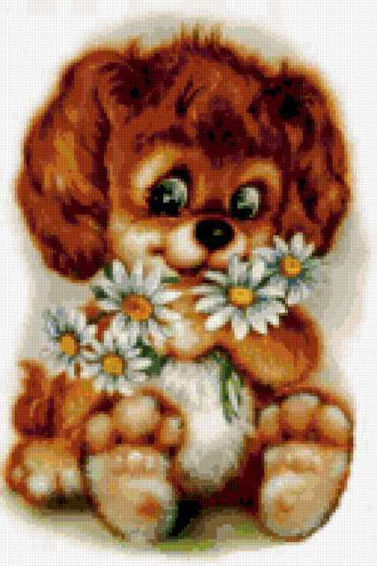 Ориентировочно так, схема вышивки «Unnamed-946440», созданная автором anor, будет выглядеть при отшиве на канве. Размер данной вышивки равен 127x190 крестов, при этом используется 57 цветов. Ключевые слова, по которым можно найти эту схему: собаки, собака, собачка, картина. Также, вы можете взглянуть на оригинальную картинку, соответствующую данной схеме вышивки.