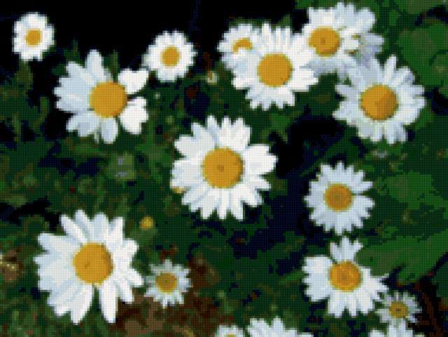 Ориентировочно так, схема вышивки «Unnamed-952486», созданная автором malkinaiv, будет выглядеть при отшиве на канве. Размер данной вышивки равен 190x143 крестов, при этом используется 44 цветов. Ключевые слова, по которым можно найти эту схему: цветы, ромашки. Также, вы можете взглянуть на оригинальную картинку, соответствующую данной схеме вышивки.