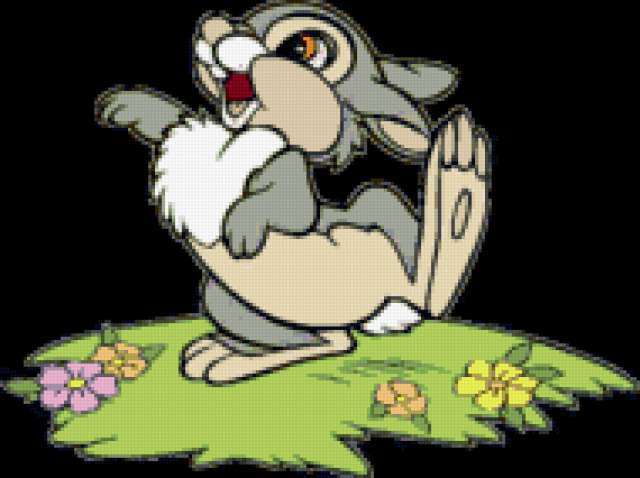 Ориентировочно так, схема вышивки «Unnamed-952505», созданная автором malkinaiv, будет выглядеть при отшиве на канве. Размер данной вышивки равен 190x142 крестов, при этом используется 36 цветов. Ключевые слова, по которым можно найти эту схему: заяц, кролик, картинки, мультики, детям, в детскую. Также, вы можете взглянуть на оригинальную картинку, соответствующую данной схеме вышивки.