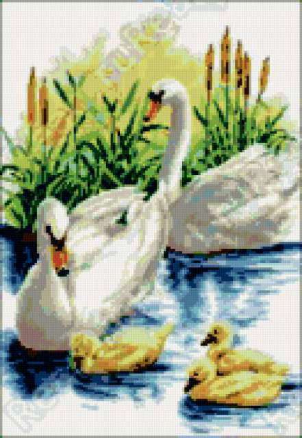 Ориентировочно так, схема вышивки «Unnamed-954608», созданная автором malkinaiv, будет выглядеть при отшиве на канве. Размер данной вышивки равен 131x190 крестов, при этом используется 46 цветов. Ключевые слова, по которым можно найти эту схему: птицы, лебеди, озеро, птенцы, камыши. Также, вы можете взглянуть на оригинальную картинку, соответствующую данной схеме вышивки.