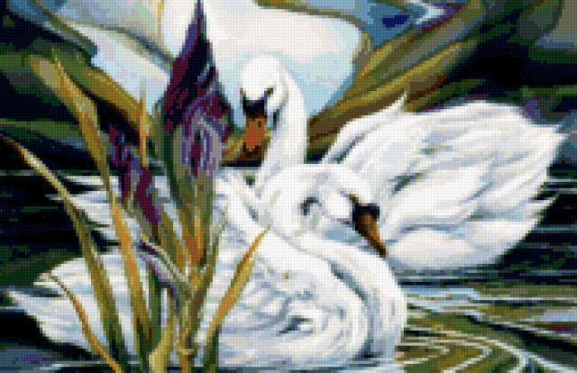 Ориентировочно так, схема вышивки «Unnamed-955374», созданная автором malkinaiv, будет выглядеть при отшиве на канве. Размер данной вышивки равен 190x123 крестов, при этом используется 61 цветов. Ключевые слова, по которым можно найти эту схему: картина, птицы, лебеди, озеро, цветы. Также, вы можете взглянуть на оригинальную картинку, соответствующую данной схеме вышивки.