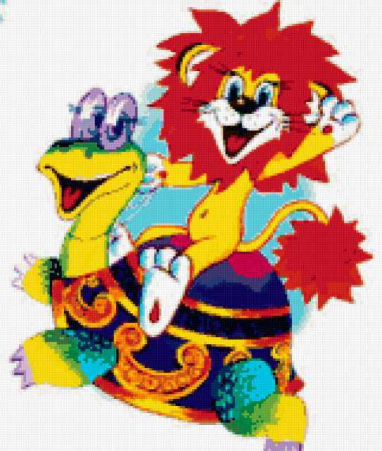 Ориентировочно так, схема вышивки «Unnamed-962046», созданная автором malkinaiv, будет выглядеть при отшиве на канве. Размер данной вышивки равен 161x190 крестов, при этом используется 45 цветов. Ключевые слова, по которым можно найти эту схему: картинки, в детскую, детям, мультики, черепаха, львенок. Также, вы можете взглянуть на оригинальную картинку, соответствующую данной схеме вышивки.