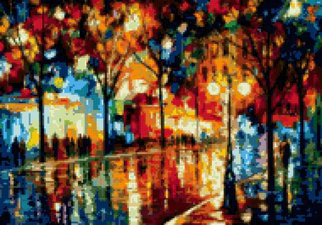 Ориентировочно так, схема вышивки «Unnamed-965265», созданная автором malkinaiv, будет выглядеть при отшиве на канве. Размер данной вышивки равен 190x133 крестов, при этом используется 42 цветов. Ключевые слова, по которым можно найти эту схему: картина, пейзаж, город, улица, дождь. Также, вы можете взглянуть на оригинальную картинку, соответствующую данной схеме вышивки.
