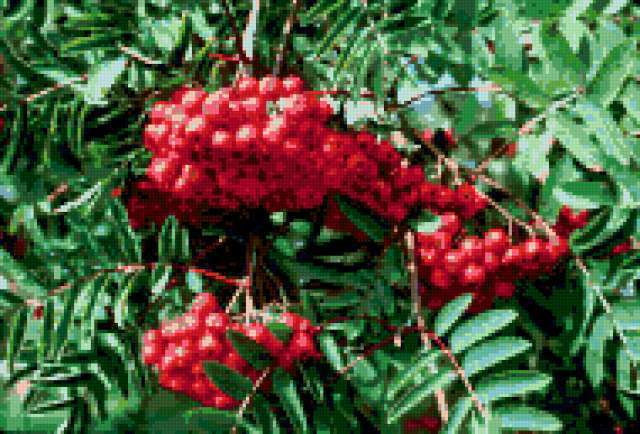 Ориентировочно так, схема вышивки «Unnamed-966198», созданная автором malkinaiv, будет выглядеть при отшиве на канве. Размер данной вышивки равен 190x129 крестов, при этом используется 40 цветов. Ключевые слова, по которым можно найти эту схему: ягоды, рябина, листья. Также, вы можете взглянуть на оригинальную картинку, соответствующую данной схеме вышивки.