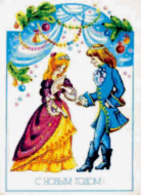 Ориентировочно так, схема вышивки «Unnamed-966550», созданная автором malkinaiv, будет выглядеть при отшиве на канве. Размер данной вышивки равен 138x190 крестов, при этом используется 79 цветов. Ключевые слова, по которым можно найти эту схему: новый год, принц, принцесса, сказки. Также, вы можете взглянуть на оригинальную картинку, соответствующую данной схеме вышивки.