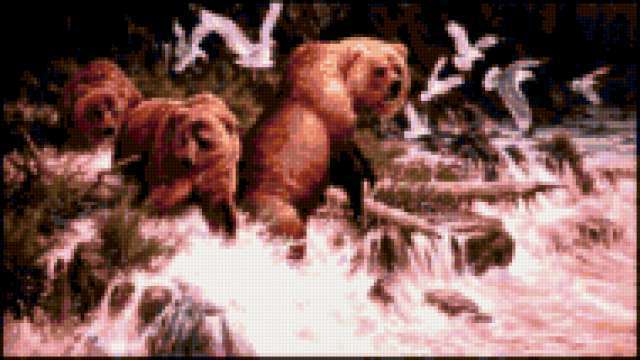 Ориентировочно так, схема вышивки «Unnamed-970529», созданная автором ayse, будет выглядеть при отшиве на канве. Размер данной вышивки равен 190x107 крестов, при этом используется 63 цветов. Ключевые слова, по которым можно найти эту схему: jivotni, peyzaj. Также, вы можете взглянуть на оригинальную картинку, соответствующую данной схеме вышивки.