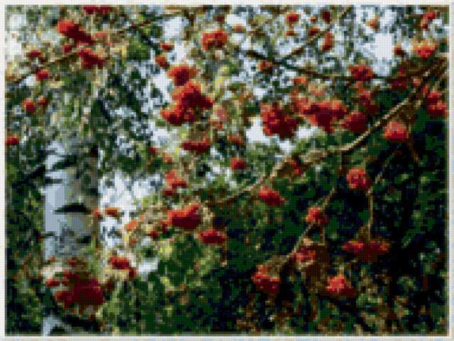 Ориентировочно так, схема вышивки «Unnamed-972994», созданная автором malkinaiv, будет выглядеть при отшиве на канве. Размер данной вышивки равен 190x143 крестов, при этом используется 49 цветов. Ключевые слова, по которым можно найти эту схему: пейзаж, рябина, деревья, береза, ягоды. Также, вы можете взглянуть на оригинальную картинку, соответствующую данной схеме вышивки.