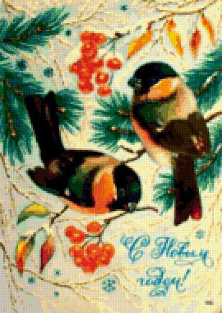 Ориентировочно так, схема вышивки «Unnamed-978014», созданная автором chokolat, будет выглядеть при отшиве на канве. Размер данной вышивки равен 135x190 крестов, при этом используется 77 цветов. Ключевые слова, по которым можно найти эту схему: зима, снег, птицы. Также, вы можете взглянуть на оригинальную картинку, соответствующую данной схеме вышивки.