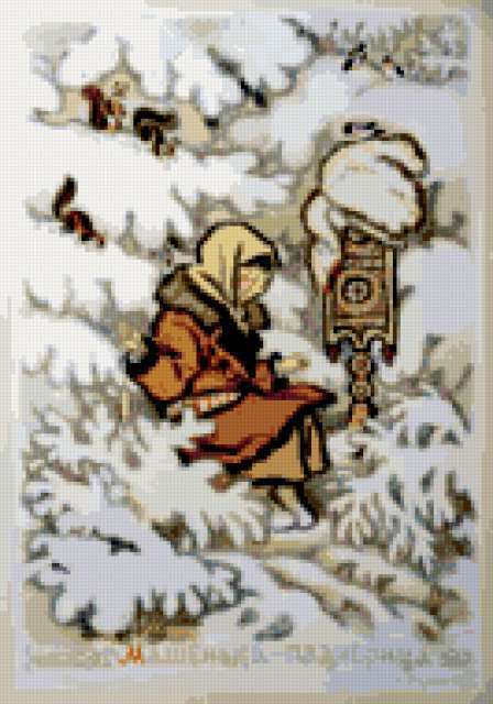Ориентировочно так, схема вышивки «Unnamed-978366», созданная автором malkinaiv, будет выглядеть при отшиве на канве. Размер данной вышивки равен 133x190 крестов, при этом используется 45 цветов. Ключевые слова, по которым можно найти эту схему: иллюстрации, сказки, деревья, елки, снег, сугробы, девушка. Также, вы можете взглянуть на оригинальную картинку, соответствующую данной схеме вышивки.