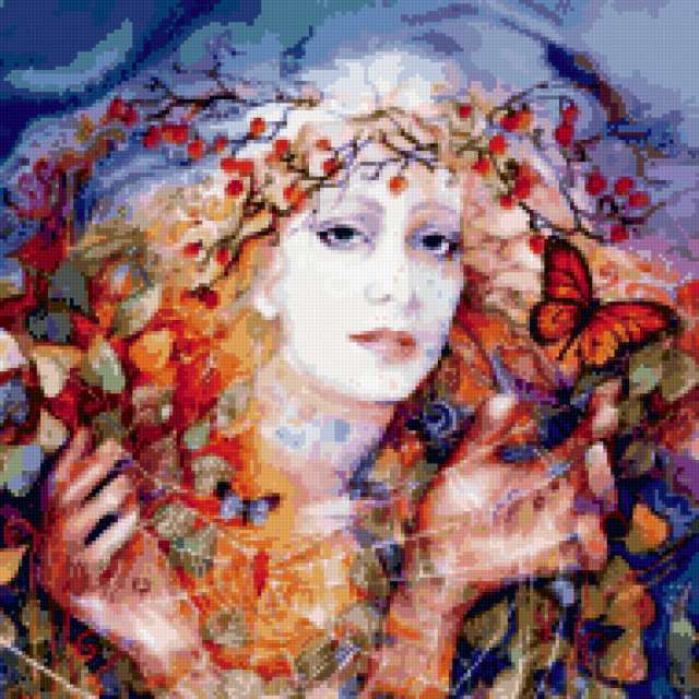 Ориентировочно так, схема вышивки «Unnamed-980048», созданная автором ze79, будет выглядеть при отшиве на канве. Размер данной вышивки равен 190x190 крестов, при этом используется 72 цветов. Ключевые слова, по которым можно найти эту схему: девушка, женщина, люди, панно. Также, вы можете взглянуть на оригинальную картинку, соответствующую данной схеме вышивки.