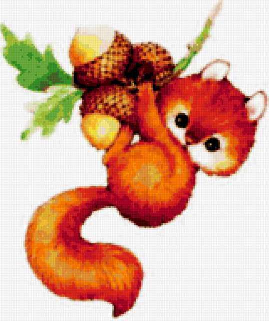 Ориентировочно так, схема вышивки «Unnamed-980482», созданная автором iborissova, будет выглядеть при отшиве на канве. Размер данной вышивки равен 160x190 крестов, при этом используется 59 цветов. Ключевые слова, по которым можно найти эту схему: animals, squirrel . Также, вы можете взглянуть на оригинальную картинку, соответствующую данной схеме вышивки.