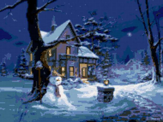 Ориентировочно так, схема вышивки «Unnamed-980511», созданная автором malkinaiv, будет выглядеть при отшиве на канве. Размер данной вышивки равен 190x143 крестов, при этом используется 24 цветов. Ключевые слова, по которым можно найти эту схему: картина, пейзаж, зима, снег, сугробы, дома, елка, снеговик, ночь. Также, вы можете взглянуть на оригинальную картинку, соответствующую данной схеме вышивки.