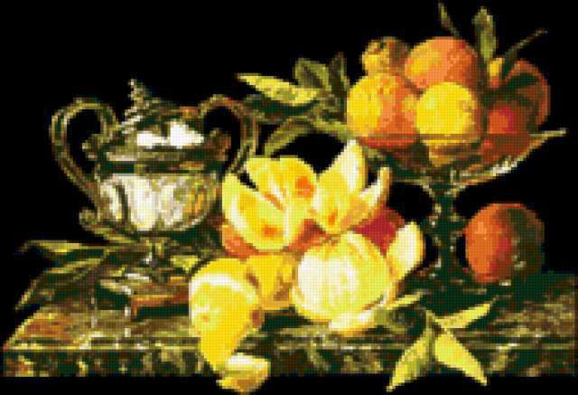 Ориентировочно так, схема вышивки «Unnamed-982948», созданная автором ayse, будет выглядеть при отшиве на канве. Размер данной вышивки равен 190x130 крестов, при этом используется 72 цветов. Ключевые слова, по которым можно найти эту схему: naturmort. Также, вы можете взглянуть на оригинальную картинку, соответствующую данной схеме вышивки.