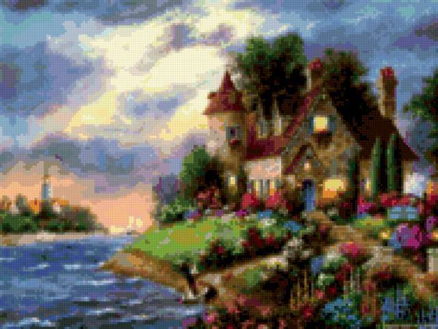 Ориентировочно так, схема вышивки «Unnamed-984210», созданная автором malkinaiv, будет выглядеть при отшиве на канве. Размер данной вышивки равен 190x143 крестов, при этом используется 87 цветов. Ключевые слова, по которым можно найти эту схему: картина, пейзаж, дома, залив, маяк, цветы. Также, вы можете взглянуть на оригинальную картинку, соответствующую данной схеме вышивки.