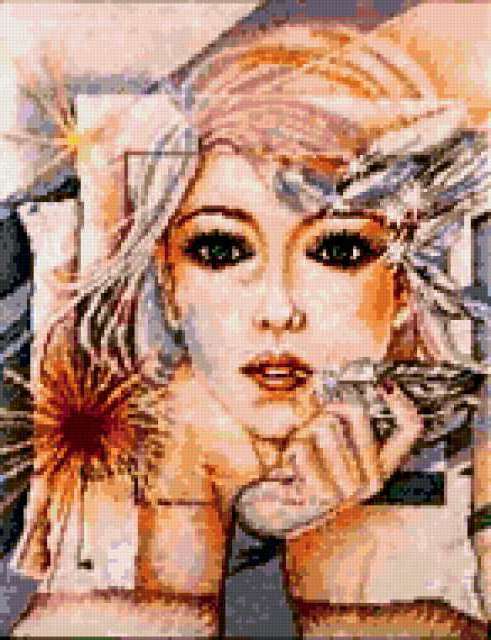 Ориентировочно так, схема вышивки «Unnamed-985619», созданная автором ze79, будет выглядеть при отшиве на канве. Размер данной вышивки равен 146x190 крестов, при этом используется 54 цветов. Ключевые слова, по которым можно найти эту схему: девушка, женщина, люди, панно, абстракция. Также, вы можете взглянуть на оригинальную картинку, соответствующую данной схеме вышивки.