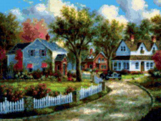 Ориентировочно так, схема вышивки «Unnamed-989338», созданная автором malkinaiv, будет выглядеть при отшиве на канве. Размер данной вышивки равен 190x143 крестов, при этом используется 79 цветов. Ключевые слова, по которым можно найти эту схему: картинеа, пейзаж, дома, город, улица, цветы, сады, цветник, деревья. Также, вы можете взглянуть на оригинальную картинку, соответствующую данной схеме вышивки.