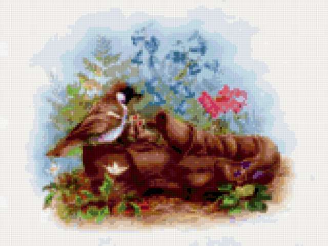 Ориентировочно так, схема вышивки «Unnamed-989406», созданная автором alyasha, будет выглядеть при отшиве на канве. Размер данной вышивки равен 170x128 крестов, при этом используется 67 цветов. Ключевые слова, по которым можно найти эту схему: птицы. Также, вы можете взглянуть на оригинальную картинку, соответствующую данной схеме вышивки.