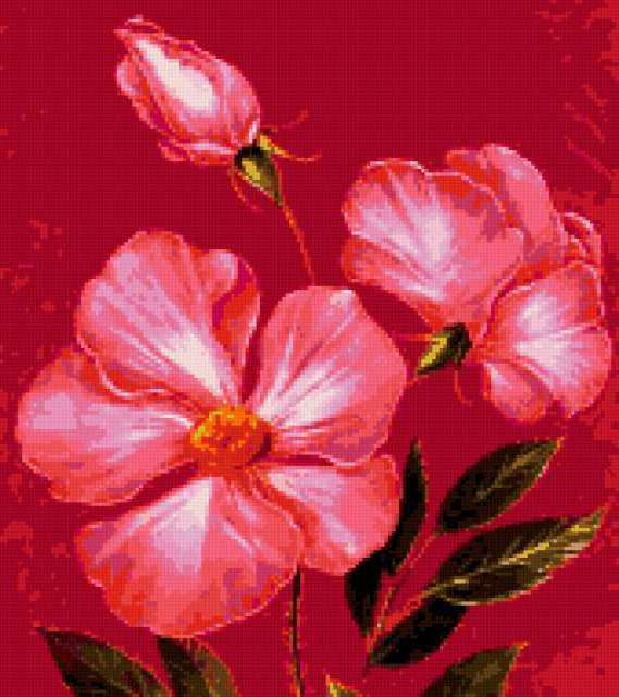 Ориентировочно так, схема вышивки «Unnamed-994442», созданная автором anor, будет выглядеть при отшиве на канве. Размер данной вышивки равен 169x190 крестов, при этом используется 33 цветов. Ключевые слова, по которым можно найти эту схему: цветы, для интерьера, для офиса, картина, подушка. Также, вы можете взглянуть на оригинальную картинку, соответствующую данной схеме вышивки.