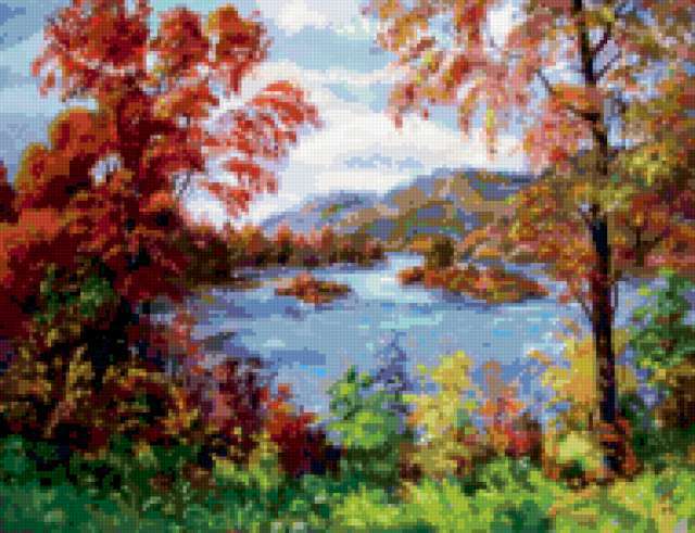 Ориентировочно так, схема вышивки «Unnamed-995499», созданная автором Nadena_love, будет выглядеть при отшиве на канве. Размер данной вышивки равен 190x146 крестов, при этом используется 85 цветов. К несчастью, автор не назначил для схемы ключевые слова. Также, вы можете взглянуть на оригинальную картинку, соответствующую данной схеме вышивки.