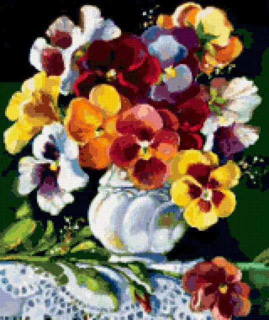 Ориентировочно так, схема вышивки «Unnamed-996232», созданная автором Luda49, будет выглядеть при отшиве на канве. Размер данной вышивки равен 160x190 крестов, при этом используется 85 цветов. К несчастью, автор не назначил для схемы ключевые слова. Также, вы можете взглянуть на оригинальную картинку, соответствующую данной схеме вышивки.