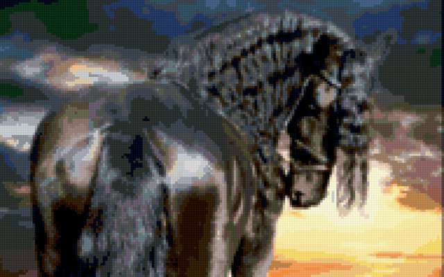 Ориентировочно так, схема вышивки «Unnamed-999306», созданная автором nina2130, будет выглядеть при отшиве на канве. Размер данной вышивки равен 190x119 крестов, при этом используется 48 цветов. Ключевые слова, по которым можно найти эту схему: конь, лошадь, животные. Также, вы можете взглянуть на оригинальную картинку, соответствующую данной схеме вышивки.