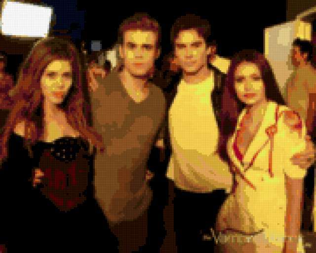 Ориентировочно так, схема вышивки «Vampire Diaries Haunted», созданная автором Niki_09, будет выглядеть при отшиве на канве. Размер данной вышивки равен 180x144 крестов, при этом используется 44 цветов. Ключевые слова, по которым можно найти эту схему: vampire diaries, дневники вампира, йен сомерхалдер, ian somerhalder, paul wesley, пол уэсли. Также, вы можете взглянуть на оригинальную картинку, соответствующую данной схеме вышивки.