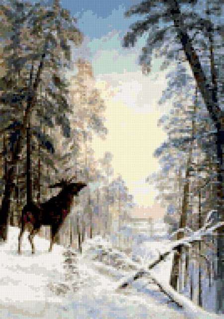 Ориентировочно так, схема вышивки «Variant 1», созданная автором Lamisa, будет выглядеть при отшиве на канве. Размер данной вышивки равен 134x190 крестов, при этом используется 55 цветов. Ключевые слова, по которым можно найти эту схему: природа, животные. Также, вы можете взглянуть на оригинальную картинку, соответствующую данной схеме вышивки.