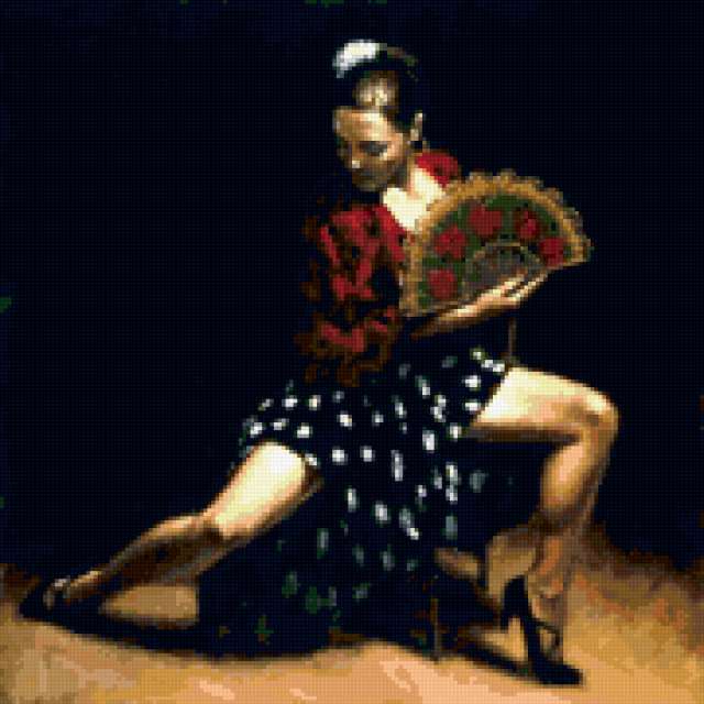 Ориентировочно так, схема вышивки «Variant 1», созданная автором Lamisa, будет выглядеть при отшиве на канве. Размер данной вышивки равен 180x180 крестов, при этом используется 51 цветов. Ключевые слова, по которым можно найти эту схему: девушка, танцовщица. Также, вы можете взглянуть на оригинальную картинку, соответствующую данной схеме вышивки.