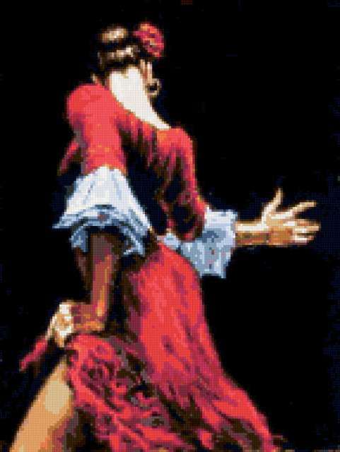 Ориентировочно так, схема вышивки «Variant 1», созданная автором Lamisa, будет выглядеть при отшиве на канве. Размер данной вышивки равен 143x190 крестов, при этом используется 31 цветов. Ключевые слова, по которым можно найти эту схему: девушка, танцовщица. Также, вы можете взглянуть на оригинальную картинку, соответствующую данной схеме вышивки.
