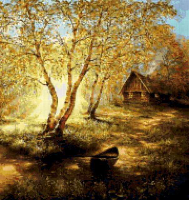 Ориентировочно так, схема вышивки «Variant 1», созданная автором Lamisa, будет выглядеть при отшиве на канве. Размер данной вышивки равен 180x190 крестов, при этом используется 54 цветов. Ключевые слова, по которым можно найти эту схему: природа, домик. Также, вы можете взглянуть на оригинальную картинку, соответствующую данной схеме вышивки.