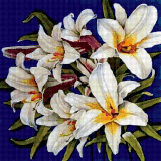 Ориентировочно так, схема вышивки «Variant 1», созданная автором Lamisa, будет выглядеть при отшиве на канве. Размер данной вышивки равен 190x190 крестов, при этом используется 77 цветов. Ключевые слова, по которым можно найти эту схему: цветы, cvety, подушка. Также, вы можете взглянуть на оригинальную картинку, соответствующую данной схеме вышивки.