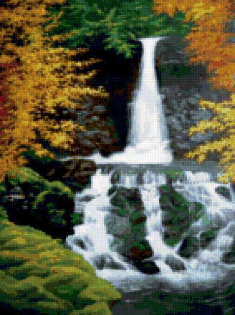 Ориентировочно так, схема вышивки «Variant 1», созданная автором Lamisa, будет выглядеть при отшиве на канве. Размер данной вышивки равен 142x190 крестов, при этом используется 76 цветов. Ключевые слова, по которым можно найти эту схему: природа, priroda, осень. Также, вы можете взглянуть на оригинальную картинку, соответствующую данной схеме вышивки.