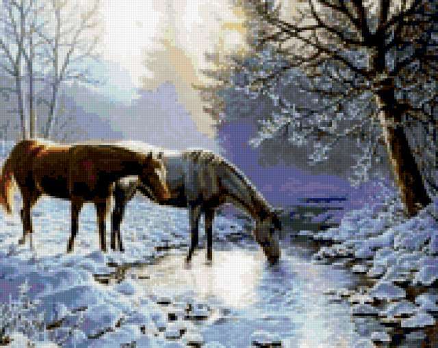 Ориентировочно так, схема вышивки «Variant 1», созданная автором Lamisa, будет выглядеть при отшиве на канве. Размер данной вышивки равен 190x151 крестов, при этом используется 77 цветов. Ключевые слова, по которым можно найти эту схему: природа, зима, zima, животные, zhivotnye. Также, вы можете взглянуть на оригинальную картинку, соответствующую данной схеме вышивки.