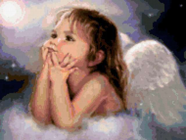 Ориентировочно так, схема вышивки «Variant 1», созданная автором Lamisa, будет выглядеть при отшиве на канве. Размер данной вышивки равен 190x143 крестов, при этом используется 71 цветов. Ключевые слова, по которым можно найти эту схему: ангел, angely, дети, фэнтези. Также, вы можете взглянуть на оригинальную картинку, соответствующую данной схеме вышивки.
