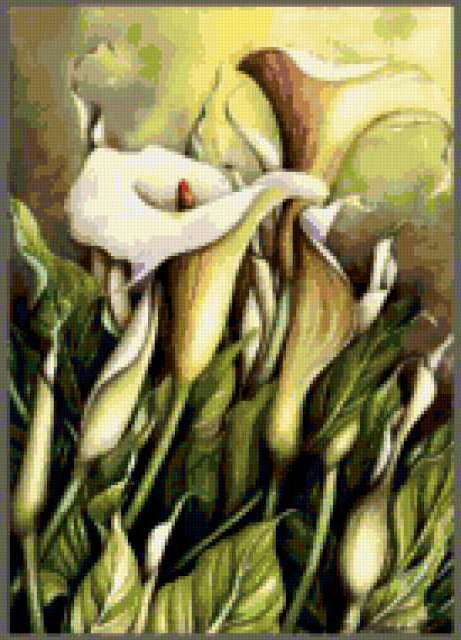 Ориентировочно так, схема вышивки «Variant 1», созданная автором Lamisa, будет выглядеть при отшиве на канве. Размер данной вышивки равен 137x190 крестов, при этом используется 75 цветов. Ключевые слова, по которым можно найти эту схему: цветы, cvety. Также, вы можете взглянуть на оригинальную картинку, соответствующую данной схеме вышивки.