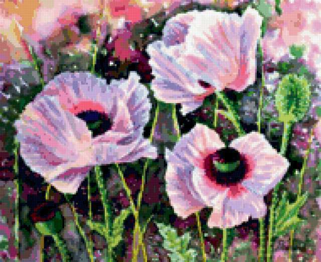 Ориентировочно так, схема вышивки «Variant 1», созданная автором Lamisa, будет выглядеть при отшиве на канве. Размер данной вышивки равен 190x155 крестов, при этом используется 86 цветов. Ключевые слова, по которым можно найти эту схему: цветы, cvety. Также, вы можете взглянуть на оригинальную картинку, соответствующую данной схеме вышивки.