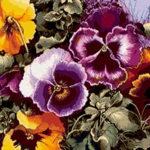 Ориентировочно так, схема вышивки «Variant 1», созданная автором Lamisa, будет выглядеть при отшиве на канве. Размер данной вышивки равен 190x190 крестов, при этом используется 48 цветов. Ключевые слова, по которым можно найти эту схему: цветы, cvety, подушка. Также, вы можете взглянуть на оригинальную картинку, соответствующую данной схеме вышивки.