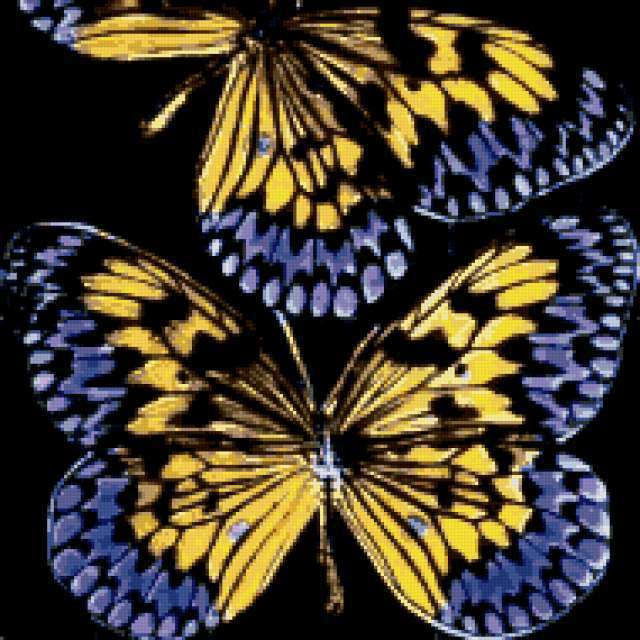 Ориентировочно так, схема вышивки «Variant 13», созданная автором Lamisa, будет выглядеть при отшиве на канве. Размер данной вышивки равен 190x190 крестов, при этом используется 28 цветов. Ключевые слова, по которым можно найти эту схему: бабочки, подушка. Также, вы можете взглянуть на оригинальную картинку, соответствующую данной схеме вышивки.