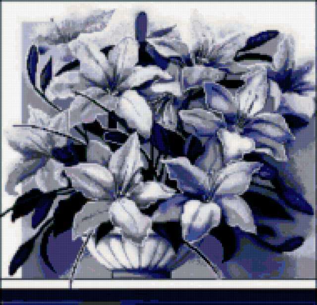 Ориентировочно так, схема вышивки «Variant 15», созданная автором Lamisa, будет выглядеть при отшиве на канве. Размер данной вышивки равен 190x183 крестов, при этом используется 50 цветов. Ключевые слова, по которым можно найти эту схему: цветы, cvety, букеты. Также, вы можете взглянуть на оригинальную картинку, соответствующую данной схеме вышивки.